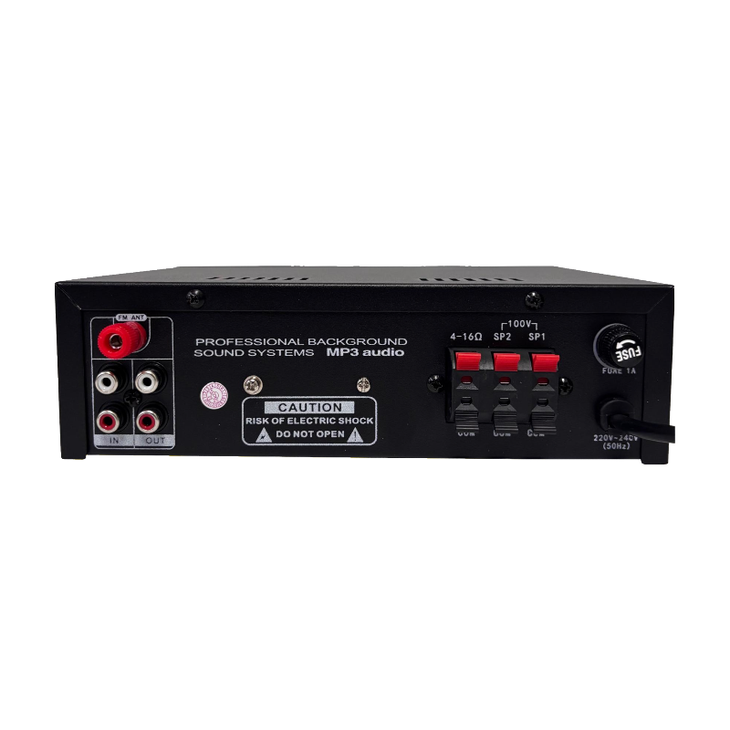 The mini amplifier is small and easy to integrate into any setup, ideal for both home and commercial use. - Front Panel Controls: